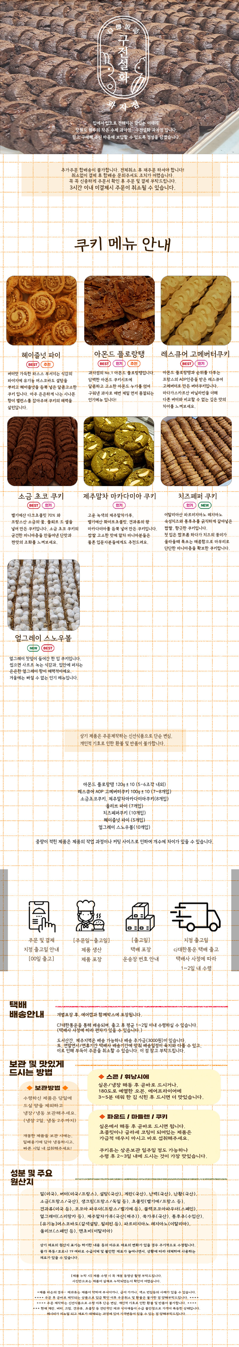 현재 올리브 파이, 초코칩 쿠키는 관련 재료 수급 불안으로 인하여 품절입니다. 양해 부탁드립니다.